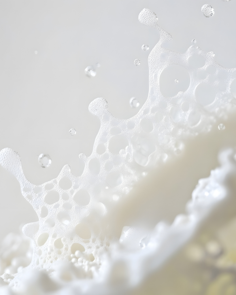 Luksusowy eliksir miękkości. Proteiny mleczne wygładzają naskórek, łagodzą podrażnienia i tworzą na skórze ochronny woal. Kąpiel z ich dodatkiem to królewski rytuał regenerujący.